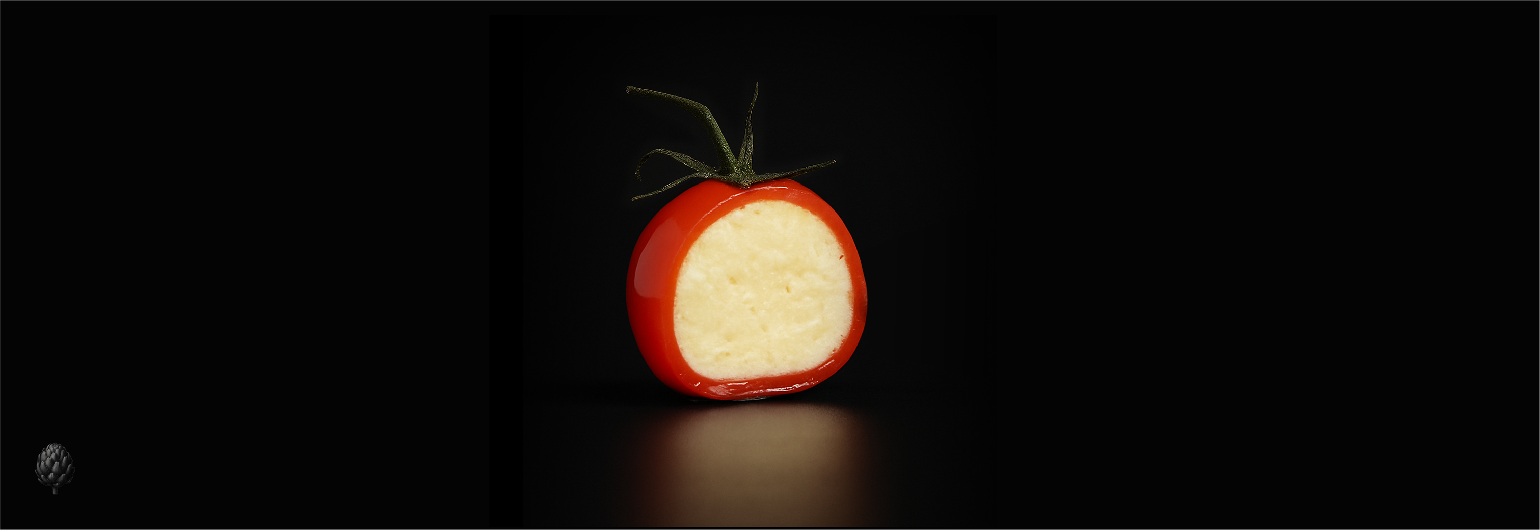 Plating use: Once glazed, the cheese spheres are plated together with yellow and orange tomatoes. The spheres mimic red cherry tomatoes, blending in visually while surprising the diner with their creamy, savory filling.