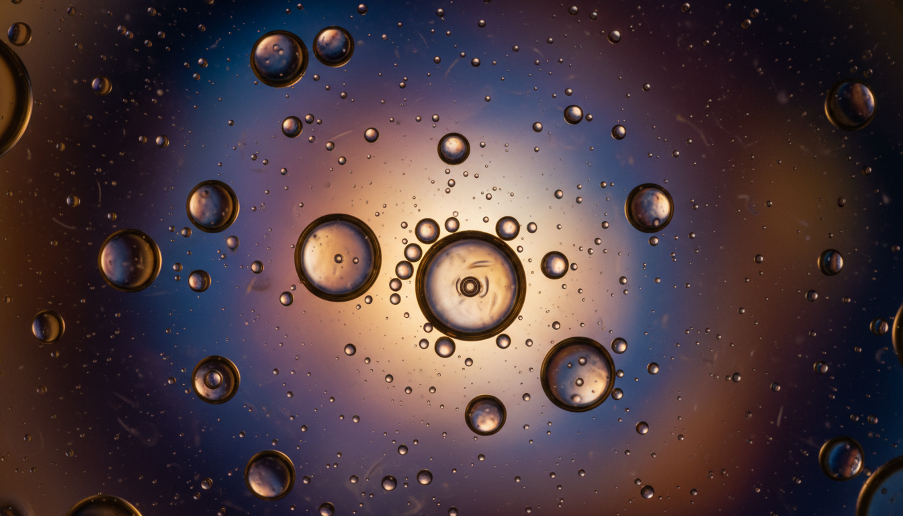 The macromolecules, long and flexible like chains, begin by absorbing water. They take it into their internal folds and pockets, wrapping it as if weaving an invisible film. The result is a liquid that becomes denser, more voluptuous, more tense from within.Thickening